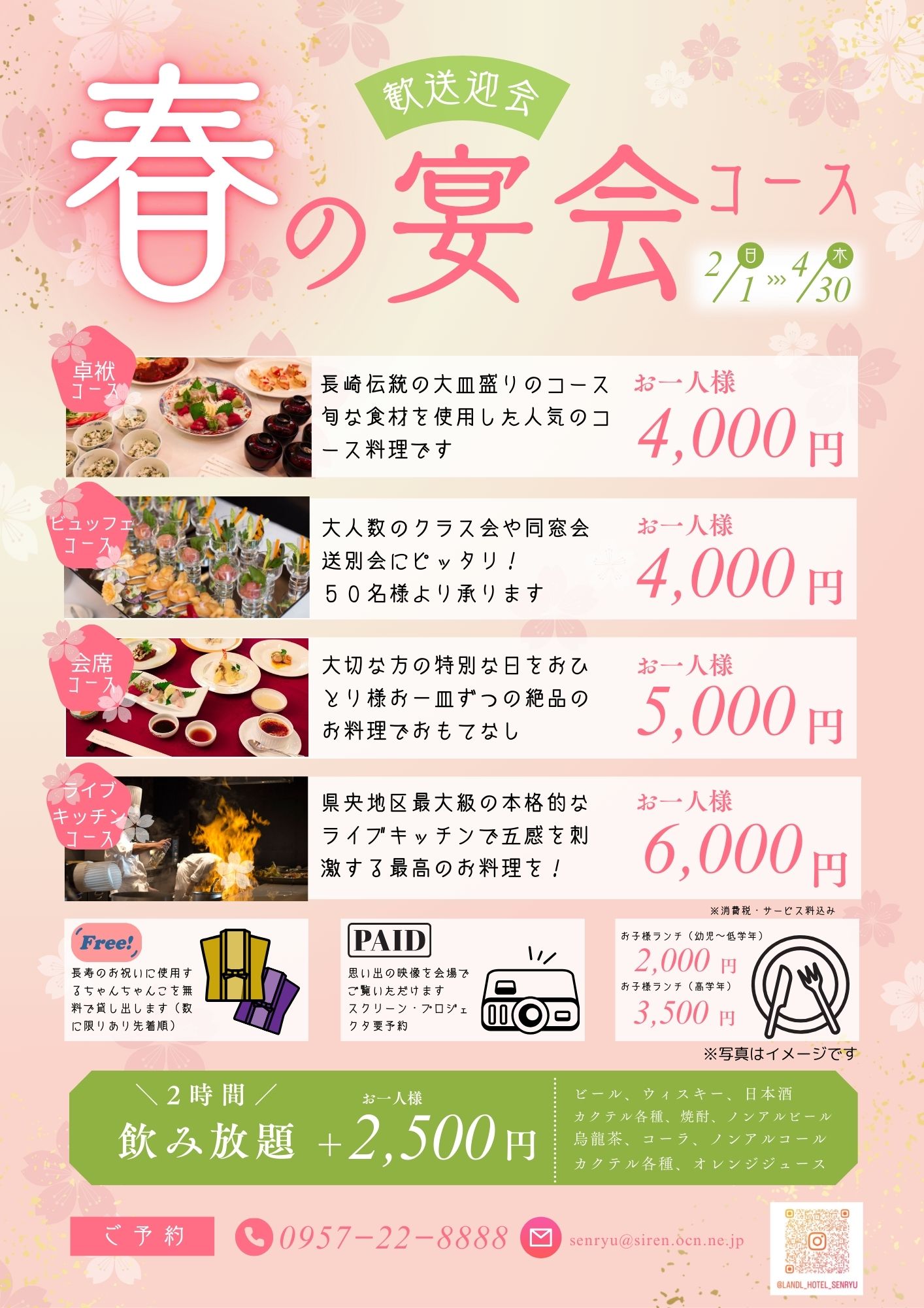 センリュウでは2月1日から「春の宴会コース」のプランを販売いたします。